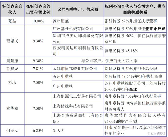 标创咨询成立于2020年12月22日,成立两天后就入股了江天科技。据悉,标创咨询的合伙人包括江天科技的客户、供应商、实控人亲属等16人。