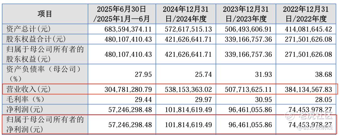 2022年至2025年上半年(以下简称“报告期”),公司的营业收入分别为3.84亿元、5.08亿元、5.38亿元和3.05亿元;归母净利润分别为7445.40万元、9646.11万元、1.02亿元和5724.63万元。