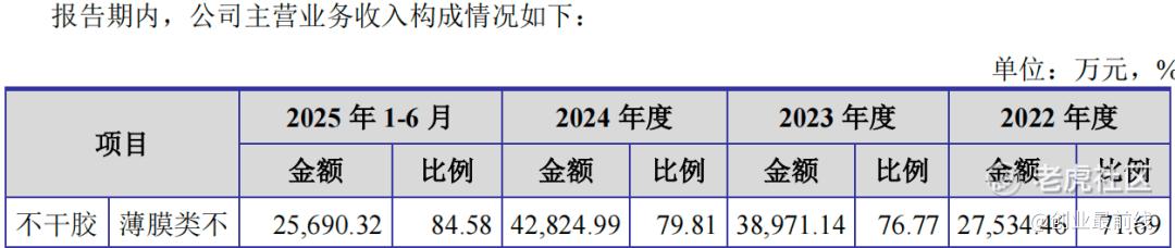 报告期内,江天科技的主要收入来自薄膜类不干胶标签,占主营业务收入比例分别为71.69%、76.77%、79.81%和84.58%,一路走高。与此同时,纸张类不干胶标签的收入占比逐年下降。