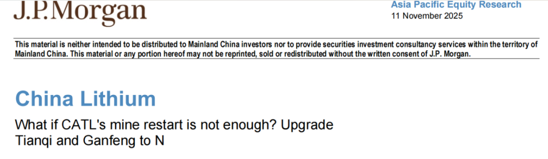 小摩对这两家公司维持中性评级,原因是预计更多产能的释放或重启将限制锂价的上涨空间。小摩将2026财年锂价预测从7万元/吨上调至9万元/吨;对赣锋锂业(A/H股)、天齐锂业(A/H股)的最新目标价分别为65元人民币/ 48元港币;54元人民币/ 50元港币。