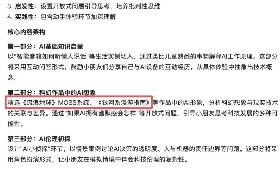 它知道我是一位科技作者,偏好是硬科幻和人性以及科技伦理,同时输出中的《流浪地球》和《银河系漫游指南》显然是考虑到了我记忆中的阿西莫夫和刘慈欣的条目。