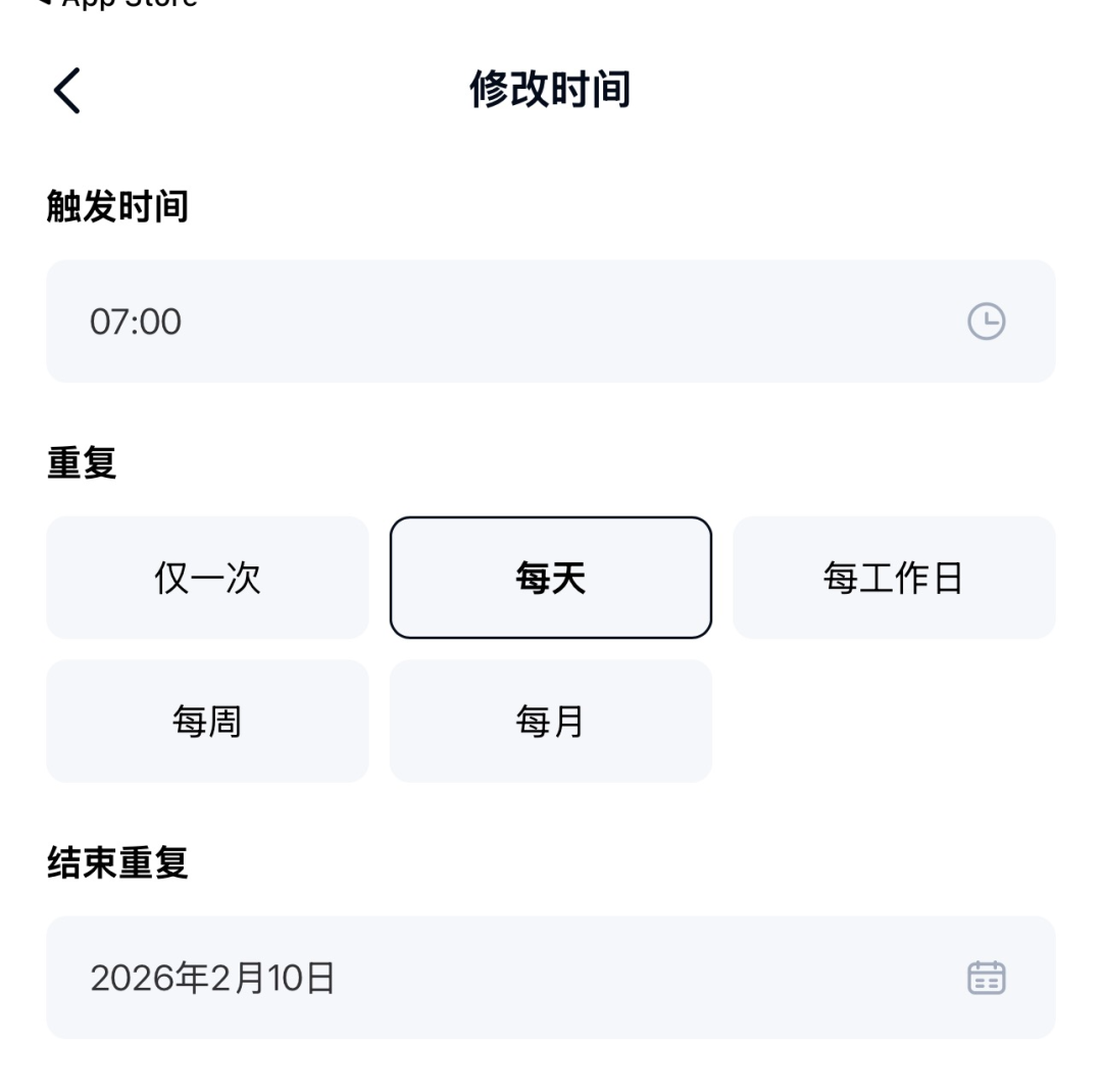 定时任务这个功能细节上也做得不错,支持随时暂停、修改,用户可以自定义触发时间和重复周期,直观便捷。