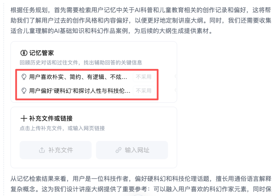 从它的思考过程看,它立刻调取了我的专属记忆库。