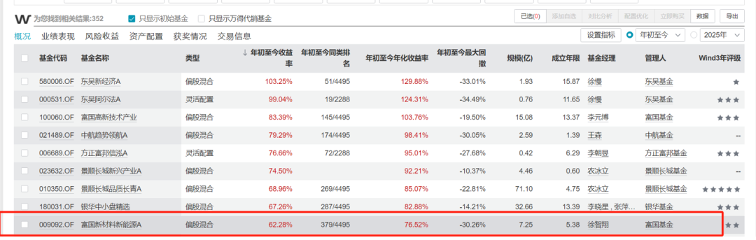 从全市场的主动型基金入手,根据Wind中机器人概念主题这一分类的主动基金,截至11月6日,全市场共有机器人概念主题主动型基金352只。若是剔除成立年限不足2年、规模不到2亿的基金后,包含富国新材料新能源(A类:009092;C类:014243)在内几只基金业绩都还不错。