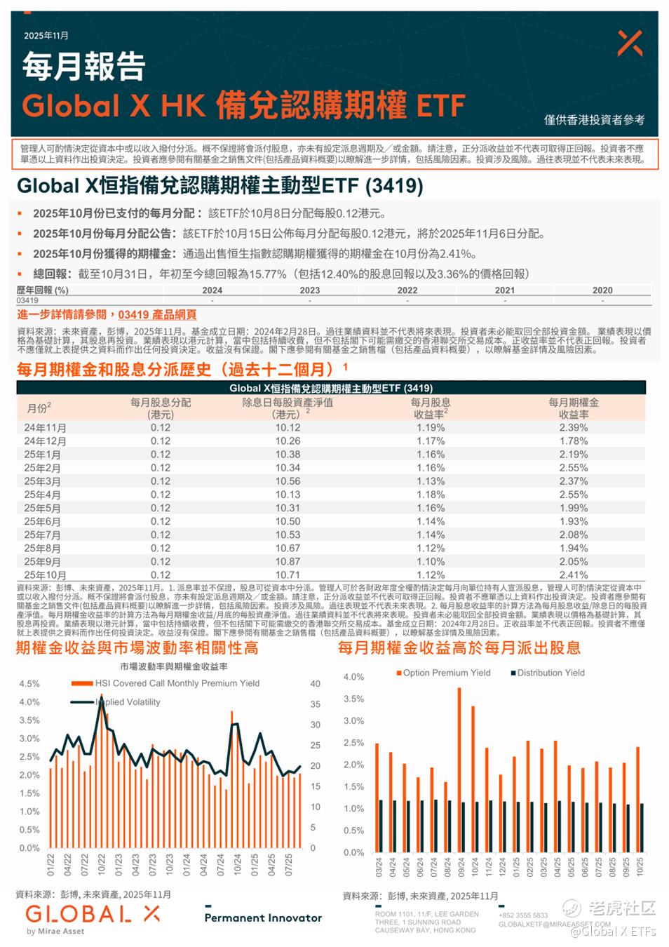 Global X 恒指备兑认购期权主动型 ETF (3419) $A GX恒指备兑(03419)$ $恒生指数(HSI)$