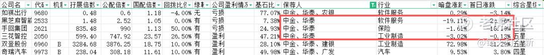 然后我就发现,但凡只有中金华泰两家保荐的票子,暗盘及首日破发率100%,但凡加随便加一个其他的保荐人,暗盘破发率就变成了0%。