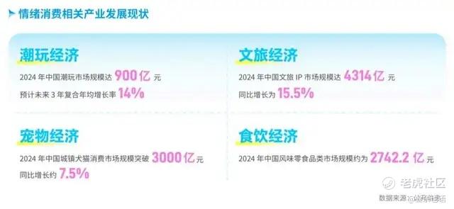 与情绪相关的潮玩、文旅、宠物、食饮等代表性行业均处在高速增长中,并且在未来几年里呈现上升趋势。