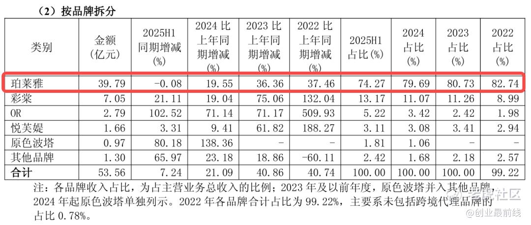主品牌陷入增长瓶颈,但第二梯队品牌表现却很亮眼。2025年上半年,彩棠营收7.05亿元(同比增长21.11%),OR(Off&Relax)营收2.79亿元(同比增长102.52%),原色波塔营收0.97亿元(同比增长80.18%)。