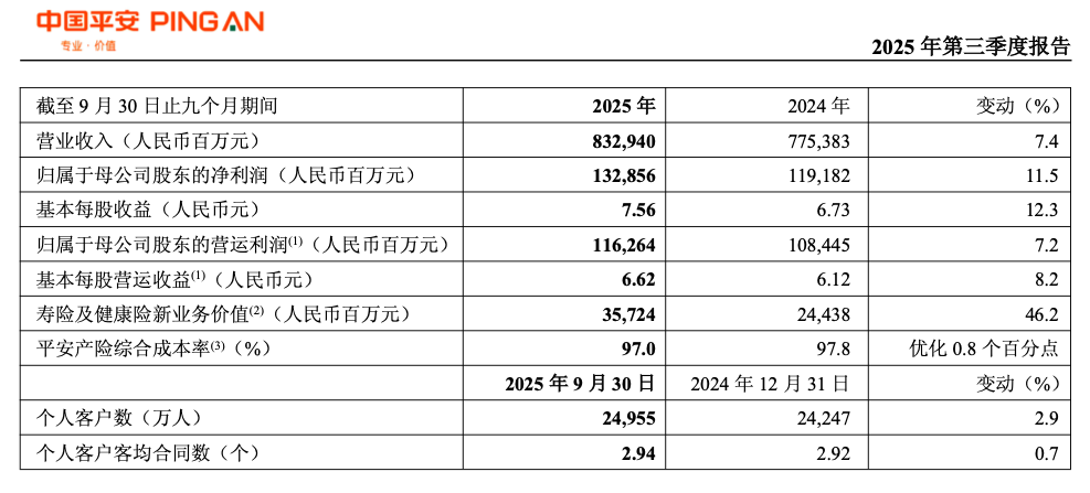 中国平安交出了一份颇为“亮眼”的三季报。