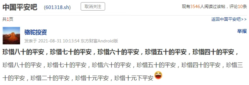 更有股民自嘲:自从珍惜了中国平安后,宝马换成了宝来,宝来又换成了爱玛,爱玛又换成了永久,现在就剩下一个碗了!