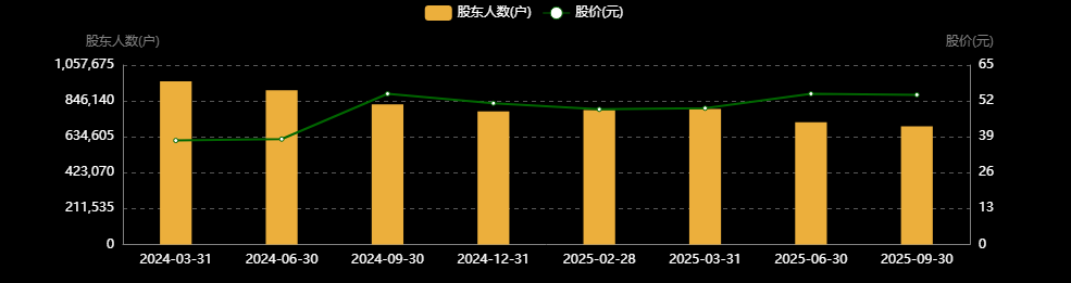 2021年9月底的时候,中国平安的的股东数量高达130.8万户;到了2025年9月底,这个数字只剩下69.62万户,缩水了46%。