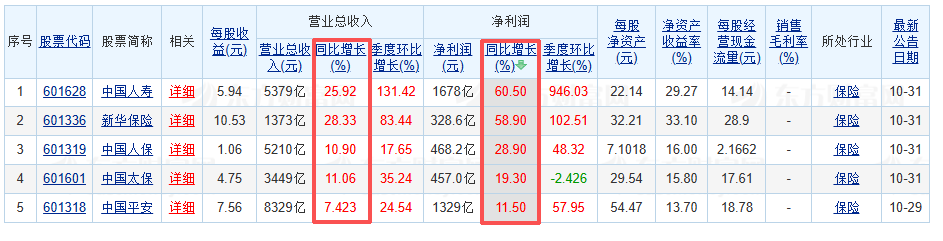 但没有对比就没有伤害,根据东方财富网的数据,同样是前三季度,新华保险营业增速为28.33%,中国人寿为25.92%,中国太保为11.06%,中国人保也有10.90%,中国平安的排名相对靠后。