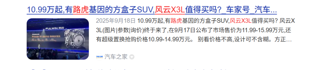 现实却给了奇瑞一记重击。挑战失败直接冲击了风云X3L的产品形象,使原本标榜的“够野够飒”产品口号显得苍白无力。