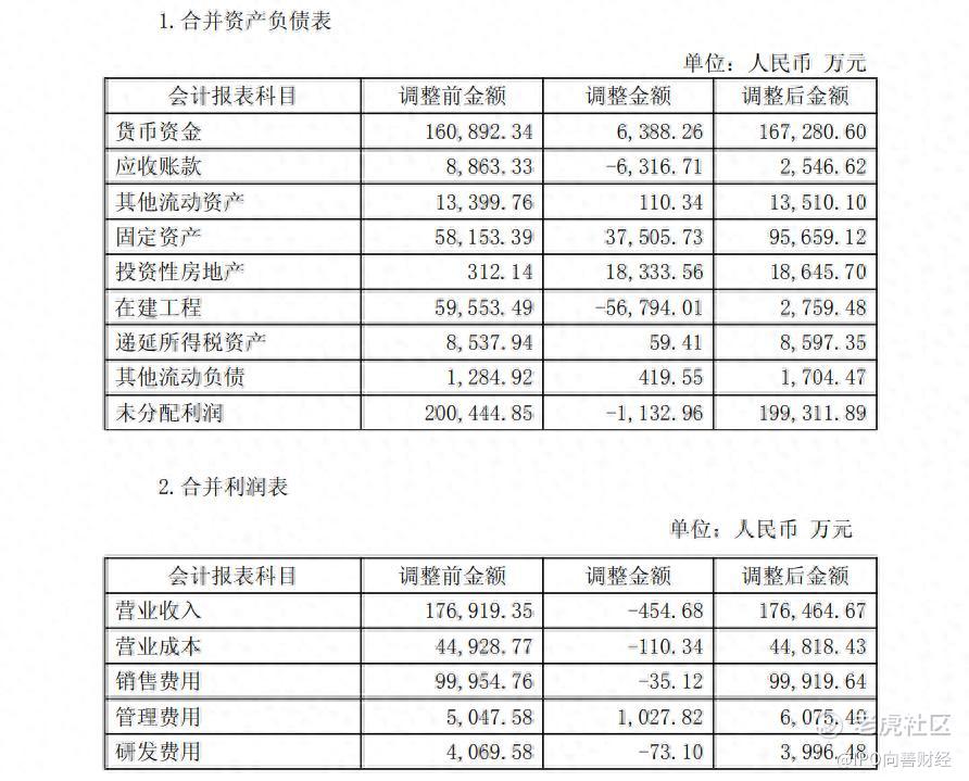 在合并资产负债表方面,同期,公司在建工程多算了约5.68亿元,调整后为2759.48万元;应收账款多算了6316.71万元,调整后为2546.62万元。