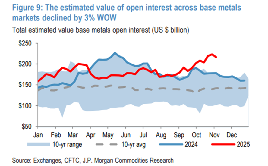 而今年的情况是在一个大家对铜比较乐观时候的保守。它同样有风险,就是错过机会的风险,比方说如果下周NV的财报后,市场又一次Risk on,然后美国的曲线和C-L价差一直维持,中国沪铜的持仓开始增加。然后三周后十二月数据支持一个鸽派降息。那么可能今天的保守会错过一些机会。