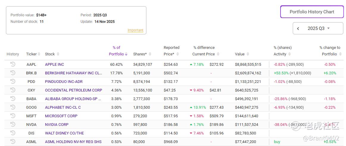 段永平Q3持仓曝光:六成押苹果,新建ASML,大幅增持巴菲特
