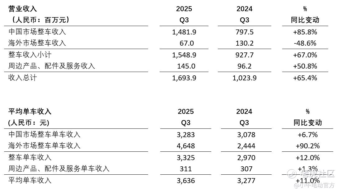 · 平均单车收入为人民币3,636元,同比增长11.0%,主要由于中国市场整车收入占比以及平均单车收入的提升。