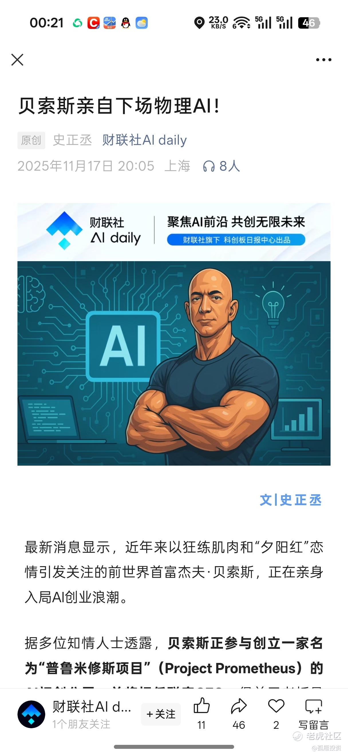 $涂鸦智能(TUYA)$ 贝索斯也搞了一个物理AI的项目,市场对这个方向还在加码当中,涂鸦重点转向物理AI符合时代确实趋势,等业绩出来看看有啥进展