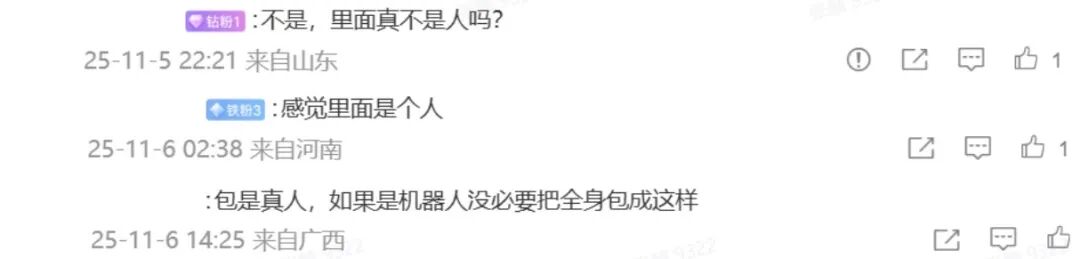部分网友对小鹏机器人真实性产生质疑,图片来源:微博