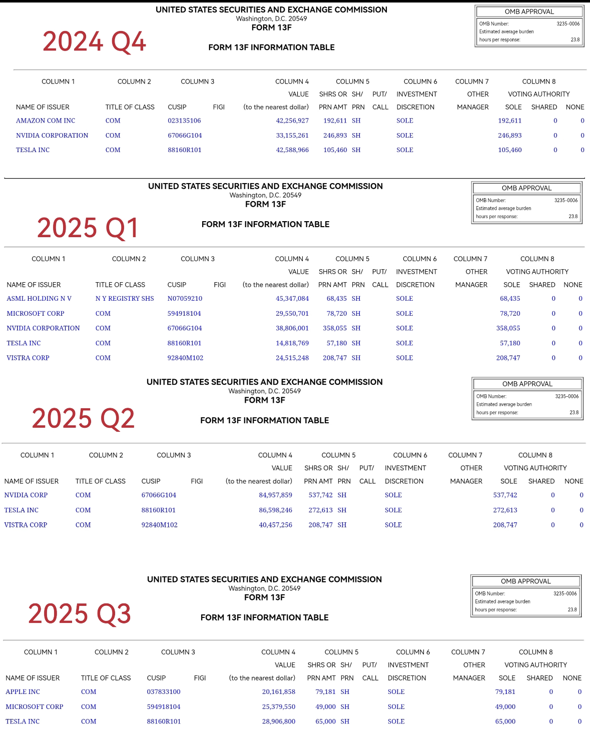 从持仓来看,是的。从24年Q4一路加仓英伟达,直到25年Q2达到顶峰,随后Q3全部卖出,另外还把电力VST卖了。甲骨文和OpenAI的合作,就是从9月中旬开始的。(或许科技大佬的抛售也就始于担心整个AI基建开始大规模举债的泡沫)