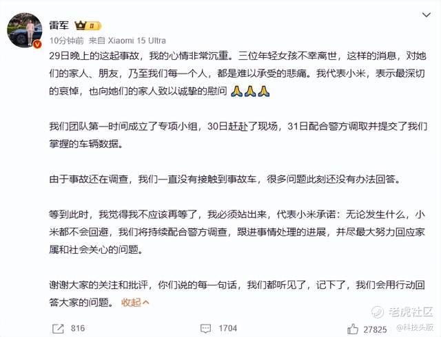 “泼天的流量也让小米汽车的每一步发展都被消费者和媒体放在聚光灯下去审视。”当事故发生时,这种关注迅速转化为质疑和批评,形成排山倒海般的舆论压力。