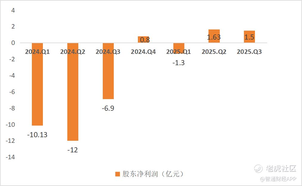 从2024年Q2开始,该公司毛利率持续为正,且处于上升趋势,2024年Q4至2025年Q3,毛利率稳定在13-15%区间,2025年Q3为14.5%,处于行业领先水平,而股东净利润持续改善,步入盈利正轨,已连续两个季度实现股东盈利。更为重要的是,该公司实现了业务造血的内循环,不再消耗现金储备。