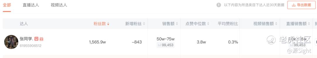 2025年,张同学的视频点赞数均过万,根据蝉妈妈数据,张同学近30天的直播销售额在50万-75万之间,与粉丝数量形成鲜明的对比