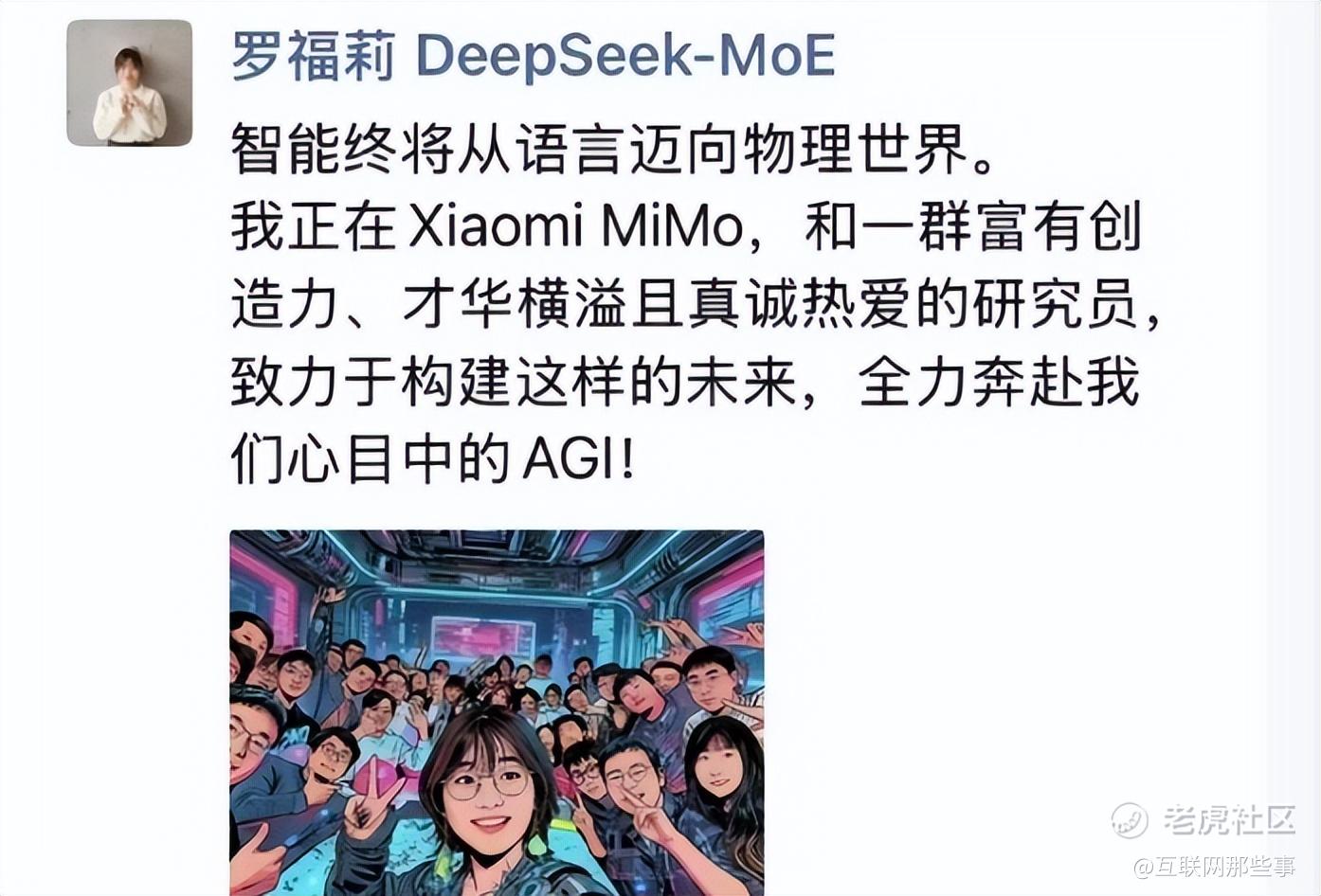 今年8月,小米开源首个自研声音理解大模型,再往前的4月末 ,小米开源首个推理大模型……再到数日前,DeepSeek核心架构师&“天才AI少女”罗福莉的正式官宣加入小米,无疑对小米的AI的研发创新将是如虎添翼!