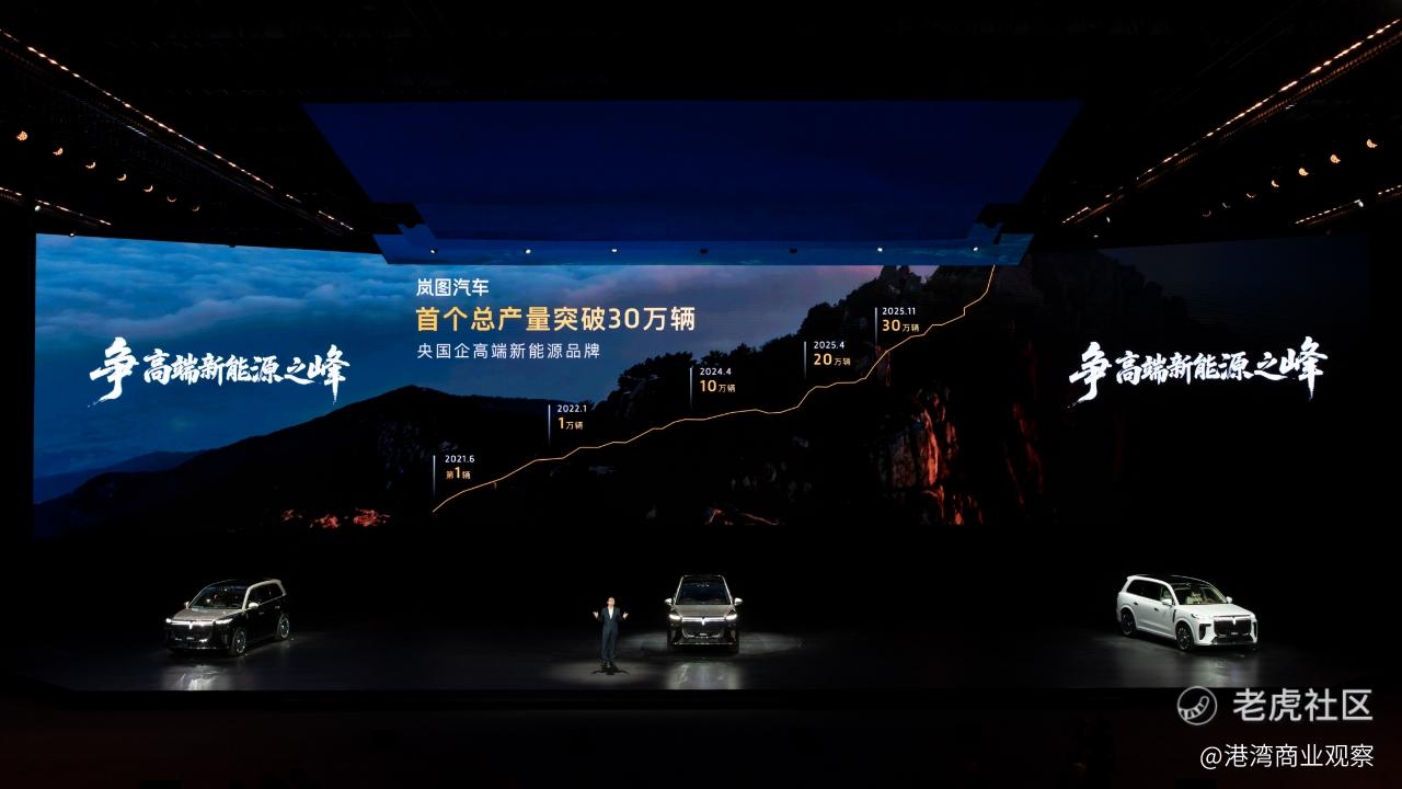 五年稳健发展之上,岚图汽车正加速夯实其央国企高端新能源第一品牌的行业地位。9月岚图汽车举行“时代风尚之夜”,岚图泰山迎来全球首秀,11月岚图泰山正式发布,向外界展示了岚图汽车强大且高效的产品研发及高端制造能力;10月岚图汽车正式向香港联合交易所递交主板上市申请,宣告企业资本化进程步入新阶段;11月岚图汽车第30万辆整车下线,成为首个达成30万辆规模的央国企高端新能源品牌,再次迎来品牌发展里程碑。