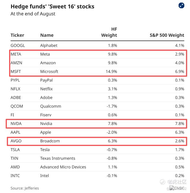 需要注意的是:这份“甜蜜16股”的数据是截止8月底的。到了9月,华尔街大佬们可能又动过几次仓位,尤其是在英伟达等热门股上。但也依然展示出了基金在Q3后半程的真实态度,足够让我们看清一个趋势——对冲基金的钱正在越来越集中到这16只股票里。