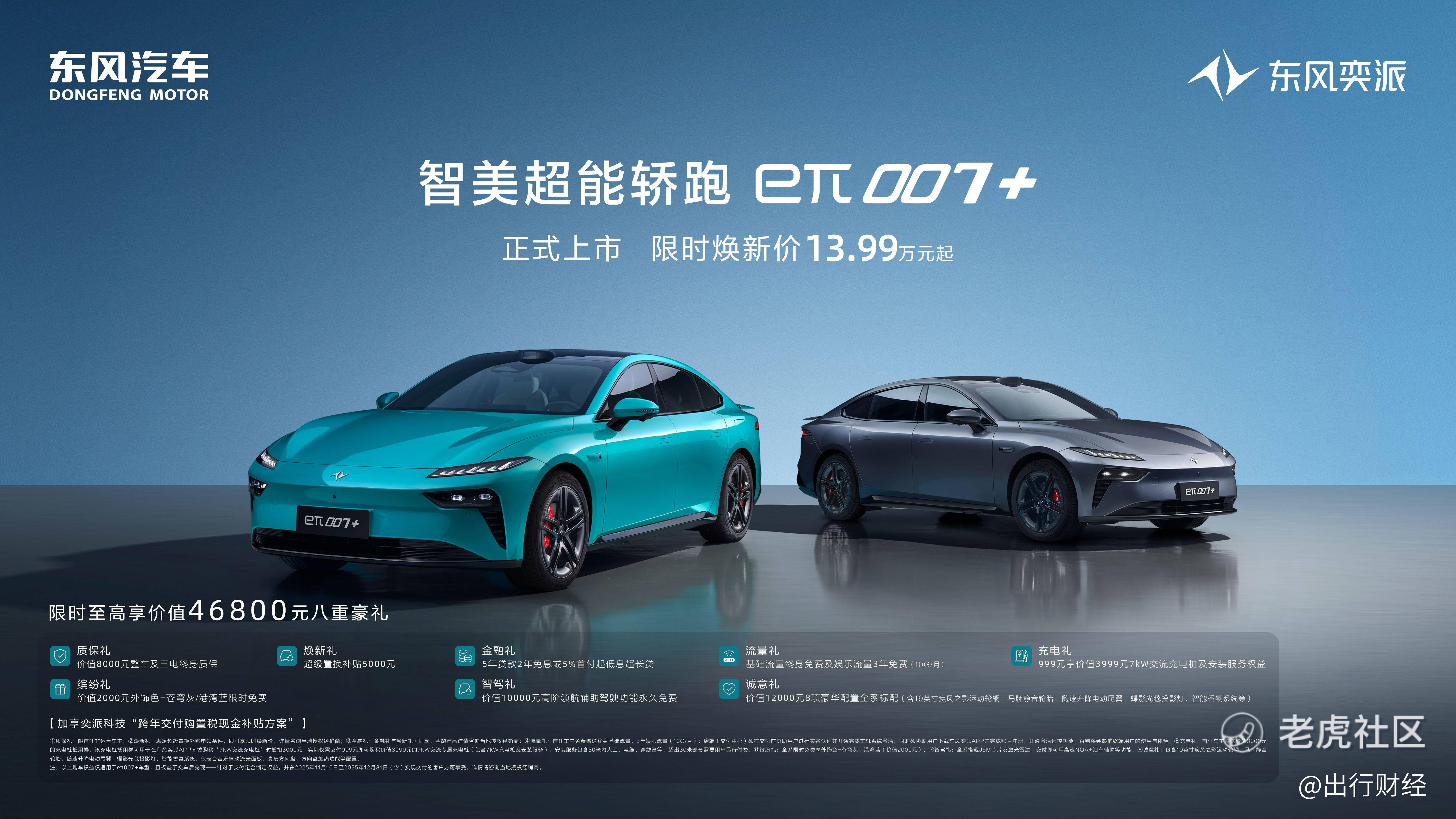 11月10日,东风奕派eπ007+正式上市,全系标配激光雷达,带来纯电及增程两种动力选择,共推出3款配置车型,限时焕新价13.99万元起。