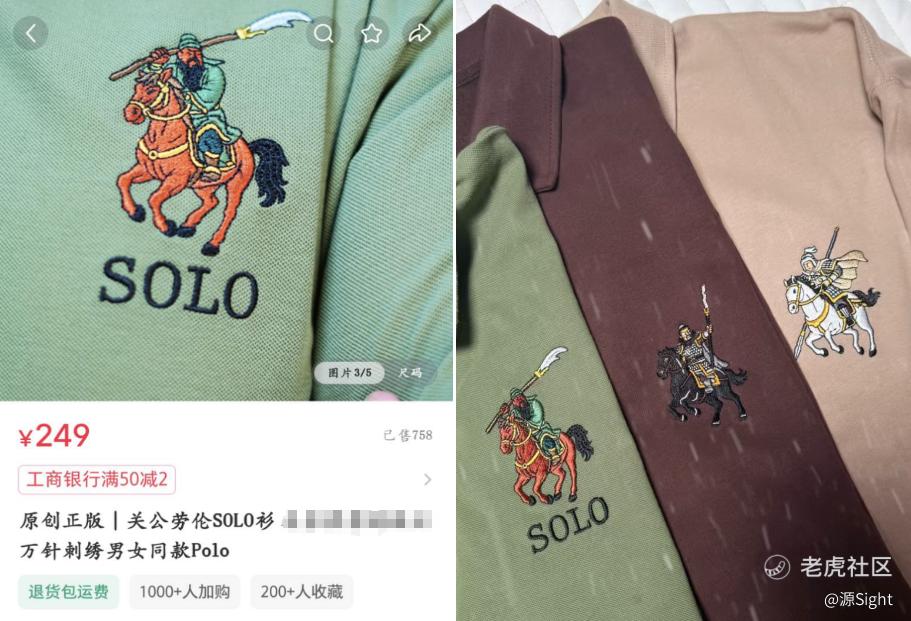 原本关公劳伦只是一个恶搞概念,结果搜索并喜爱这个logo的人实在太多,有商业嗅觉敏锐的商家便抓紧机会,真上架了一系列带有关公logo的衣服。