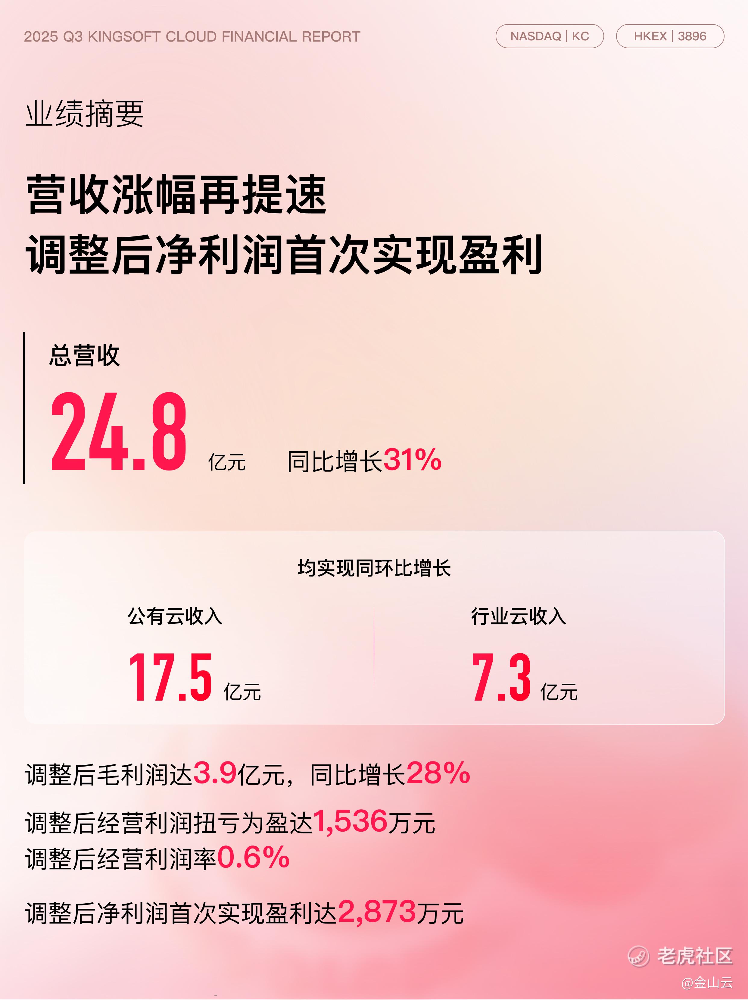 金山云Q3营收涨幅再提速 调整后净利润首次实现盈利
