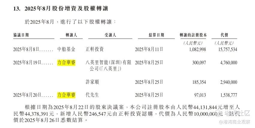 在博铭维递表前夕,2025年8月,原博铭维股东的力合华睿选择两次转让其所持有的股份,合计转让价格分别为923.88万元。而此举也被外界质疑存在为IPO突击套现的嫌疑。