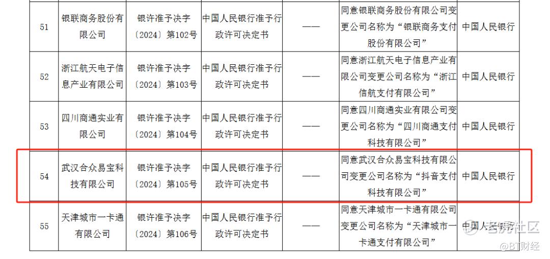 字节完成收购后,抖音也获得互联网支付牌照,为后续业务开展奠定基础。2024年6月14日,经监管部门批准,武汉合众易宝科技有限公司正式更名为“抖音支付科技有限公司”。