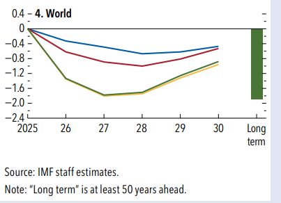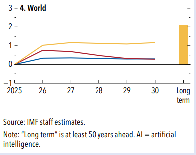 这其实不太确切,因为NVDA的财报是一个非常粗的大腿,有没有AI的Capex,2025年的全球经济是截然不同的,最简单的,用IMF的看法,在有无关税有AI的情景B和有关税无AI情景A中,全球经济增速的看法迥异