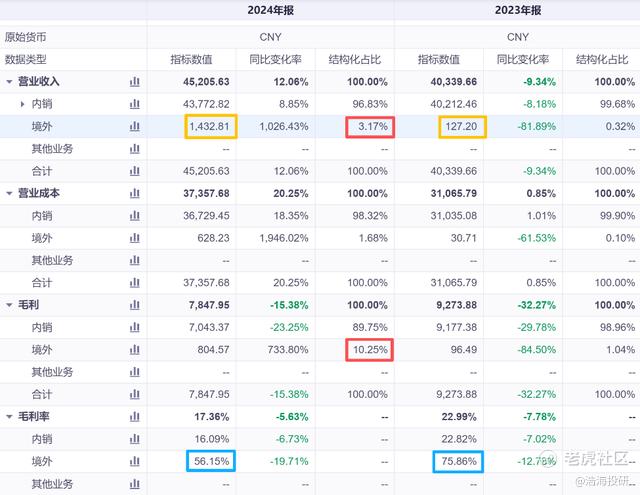 成果也直接反映在财报中:公司境外收入从2023年的127万元跃升至2024年的1433万元,毛利率更是分别高达75.86%、56.15%,显著高于公司整体20%左右的水平。尽管2024年境外收入占比仅3.17%,却贡献了10.25%的毛利,成为盈利结构优化的关键推力。