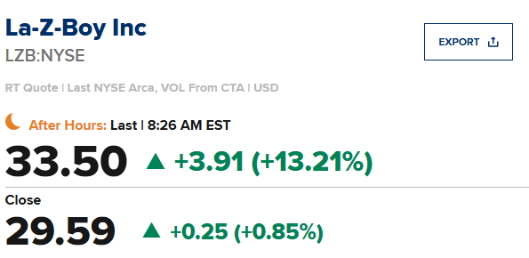 Sidoti将La-Z-Boy (LZB)的评级从中性提高至买入,目标价39美元。