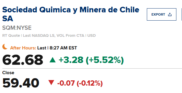 Sociedad Quimica y Minera(SQM)第三季度每股收益为0.62美元,比市场预期值0.65美元低0.03美元;营收同比增长8.9%至11.7亿美元,市场预期值11.7亿美元。