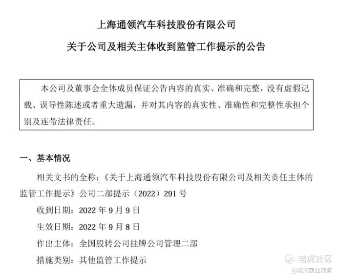 同日收到的公告还包括:2022年6月20日,通领科技与东兴证券签署了《上海通领汽车科技股份有限公司与东兴证券股份有限公司关于首次公开发行人民币普通股(A股)并上市之辅导协议》,并于6月21日向中国证券监督管理委员会上海监管局报送了辅导备案申请材料。通领科技未及时披露签署辅导协议以及向证监局报送辅导材料的公告,后于2022年6月27日补充披露。