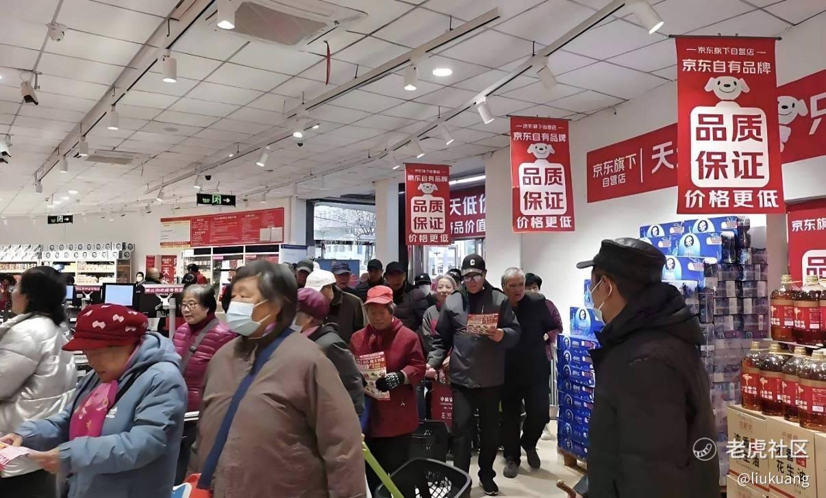 这不仅仅是因为 “名人效应”,更在于京东精准击中了县城打工人的核心痛点:极致低价。与行业主流的“小而精”折扣店不同,京东反其道而行,将门店开到了5000平方米以上,SKU超5000个,打造出一种“县城版山姆”的既视感。