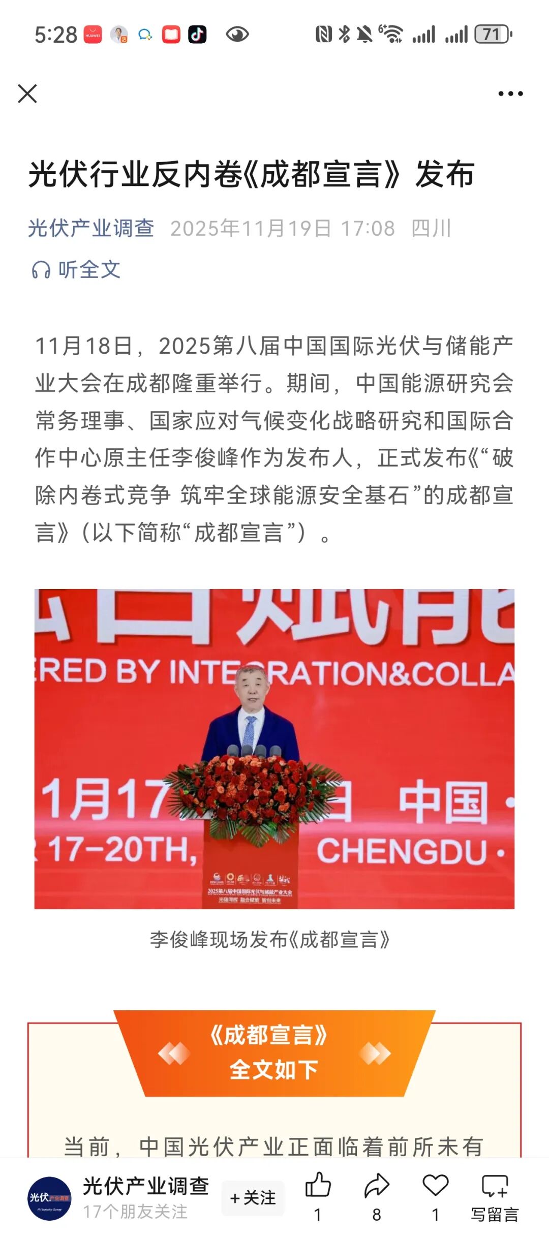 供给侧改革继续,wind上明年PPI看样子环比收窄的,价格上面应该有机会,光伏行业反内卷成都宣言发布!还有传,光伏企业得大佬们,2x号要开个反内卷2.0的会议,之前要定下来反内卷方案!