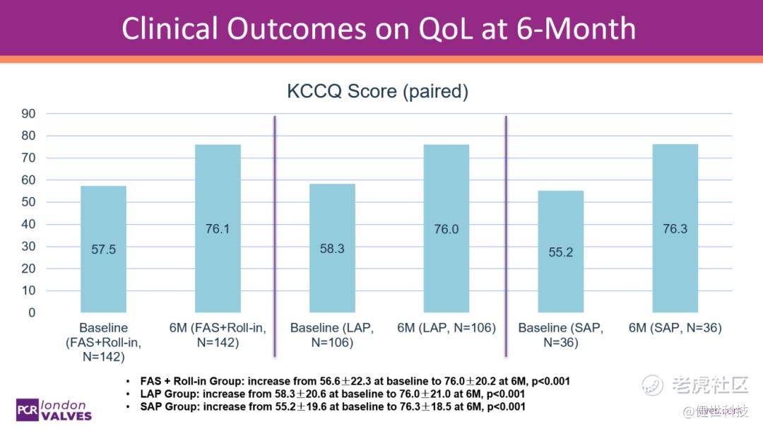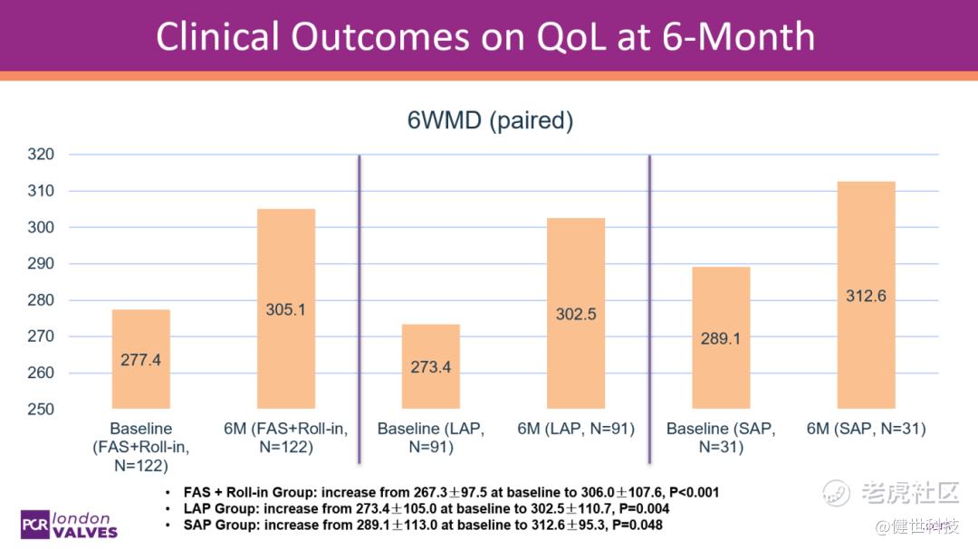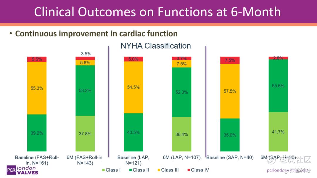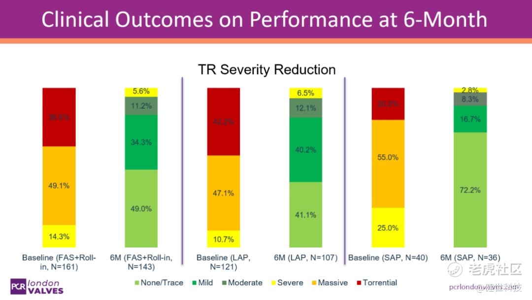 Thomas Modine 教授指出,在大瓣环患者(LAP)与小瓣环患者(SAP)的 6 个月临床随访中,两组在安全性与疗效方面整体表现相当。两类患者均显著改善了三尖瓣反流等级,提升了生活质量,同时复合不良事件发生率维持在较低水平。值得注意的是,尽管 LAP 患者的基线情况较 SAP 患者差,其 6 个月的治疗效果仍表现出良好的一致性。