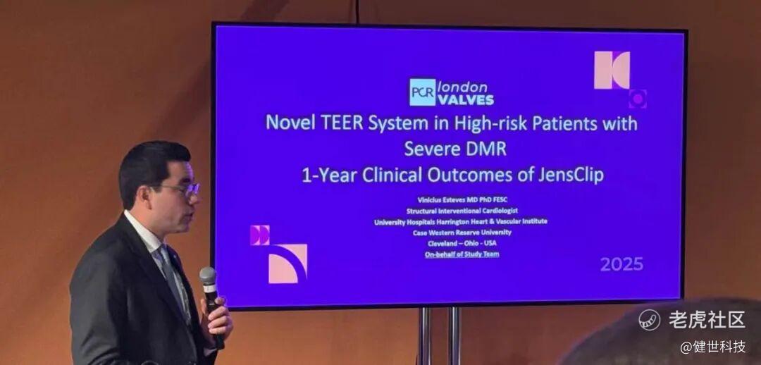 此外,来自美国克利夫兰大学医院医疗中心的 Vinicius Esteves 教授发布了JensClip一年期随访结果。JensClip是一款为治疗重度二尖瓣反流而设计的创新医疗器械,器械操作简便可靠。其前瞻性、多中心、单臂临床试验研究主要用于评估 JensClip于症状性的退行性二尖瓣反流(DMR)及外科高危患者中的安全性及有效性,共纳入18家中国中心的114例患者,平均年龄为71岁。其一年期随访结果表现优异,其中全因死亡率仅 1.8%,仅出现少数器械相关并发症,96.3% 的患者显示无中度以上反流,并带来纽约心功能等级、堪萨斯市心肌病变问卷评分、六分钟步行距离等指标的持续提升。