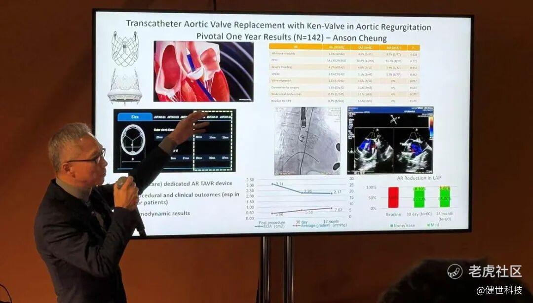 与此同时,Ken-Valve也携带大瓣环单纯反流(或合并狭窄)介入经验亮相伦敦瓣膜会。来自加拿大温哥华圣保罗医院的 Anson Cheung 教授带来“Transcatheter Aortic Valve Replacement with Ken-Valve in Aortic Regurgitation: One-Year Outcomes in Large Annulus Patients (LAP)”的内容分享。