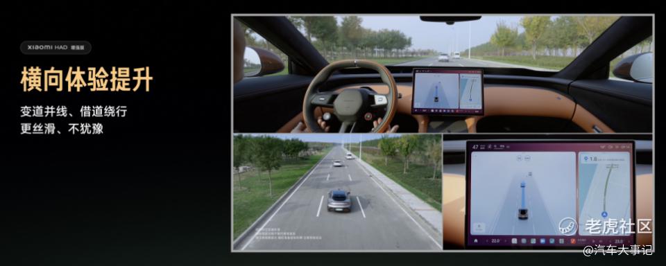 多场景的综合表现更成熟、更可靠。从高速公路的流畅变道,到城市道路的灵活穿行,再到上下地库、进出小区等细微场景,强化学习加持下的小米辅助驾驶系统在各个场景间的表现更加成熟稳健。这些能力的全面提升,让Xiaomi HAD 增强版在面对复杂多变的真实路况时,展现出更加成熟、稳健的驾驶表现,为用户带来真正意义上的安心驾乘体验。