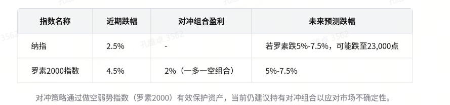 而考虑运用罗素 2000 指数进行股指回调时期的对冲,对冲效果:选择做空最弱的罗素 2000 指数进行对冲,上周五罗素 2000 指数跌破 2,500 点,纳指多跌 2.5%,罗素 2000 指数跌 4.5%,一多一空组合盈利 2%,有效保护资产并产生收益。