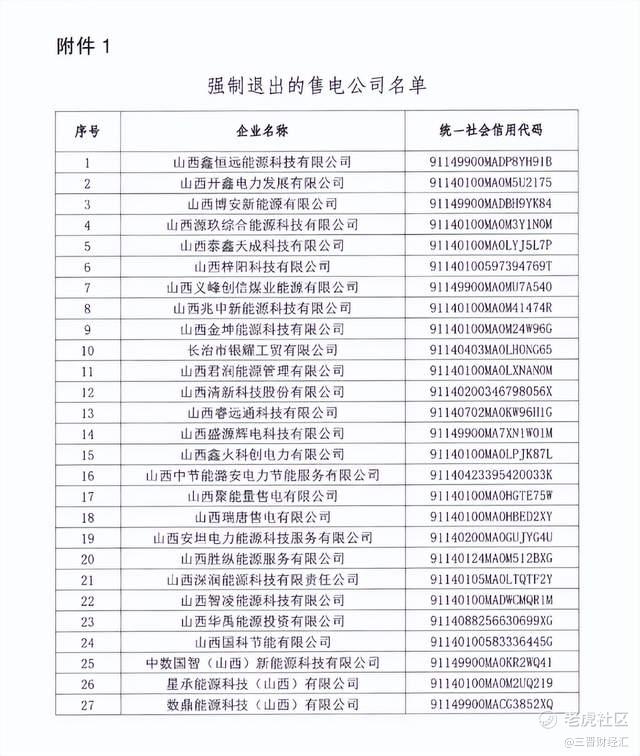公告显示,山西鑫恒远能源科技有限公司等27家售电公司,因“未持续满足注册条件、且未在规定时间内整改到位”,经请示山西省能源局及国家能源局山西监管办公室同意,拟对上述27家公司启动强制退出程序并予以公示。