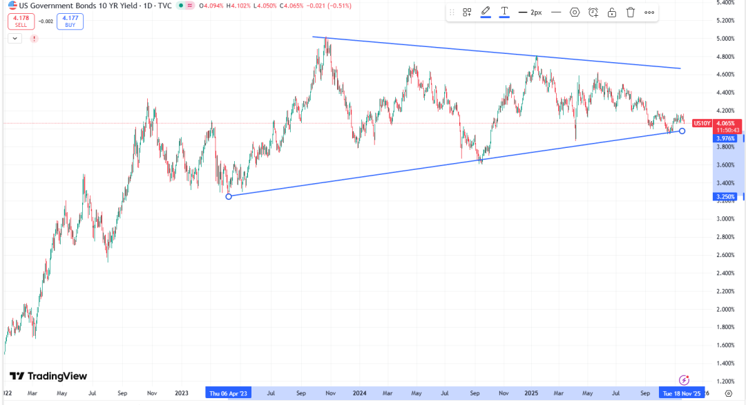 长端美债的收益率同样在下沿,这和去年9月份不一样,当时是2.5%的增速。现在是1.5%的增速,而且2024年AI投资比2025年更少,说明此时此刻,美国经济里面对AI的依赖更高了。它的价格我觉得也会被联储和AI共同影响。