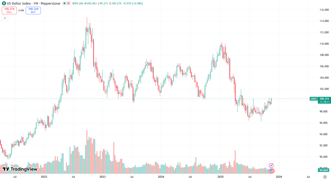 - 最好的情况肯定是,NVDA和AI的股票这几天被拉回来,然后预期修复,等于是一个流动性来源好了起来,然后联储开始放弃这几天的鹰派发言,12月降息被摆上台面,然后美元指数也在目前的关键位置走低。这是市场最Risk on的情况。